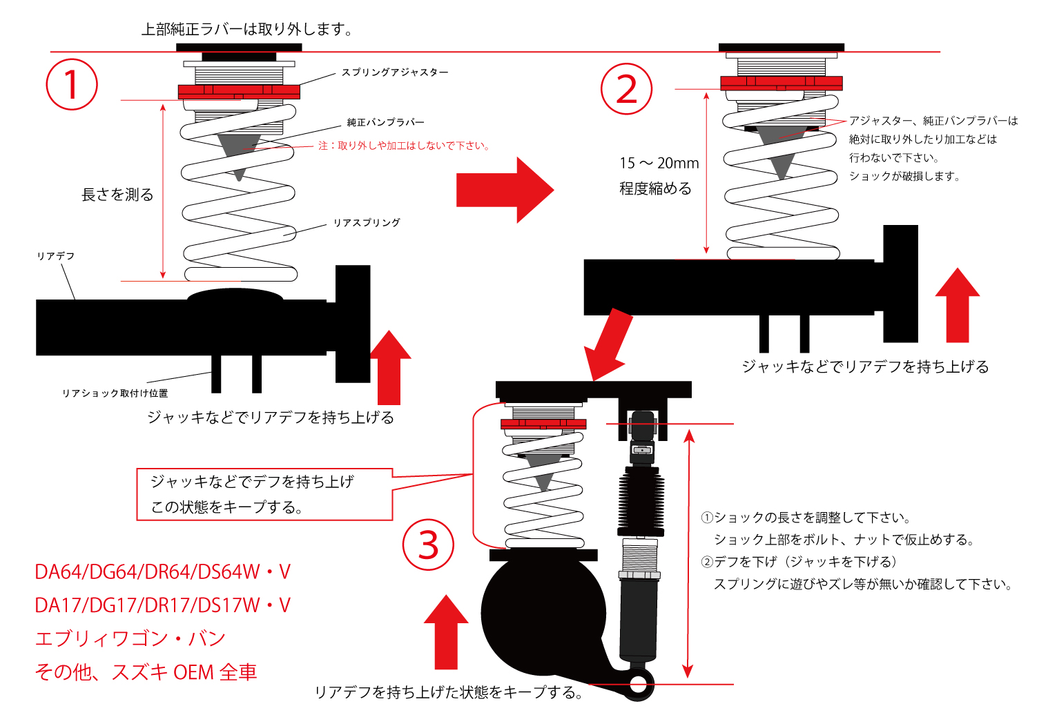 ※ショック、スプリング、ブッシュなどの消耗品は定期的な点検と交換が必要です。